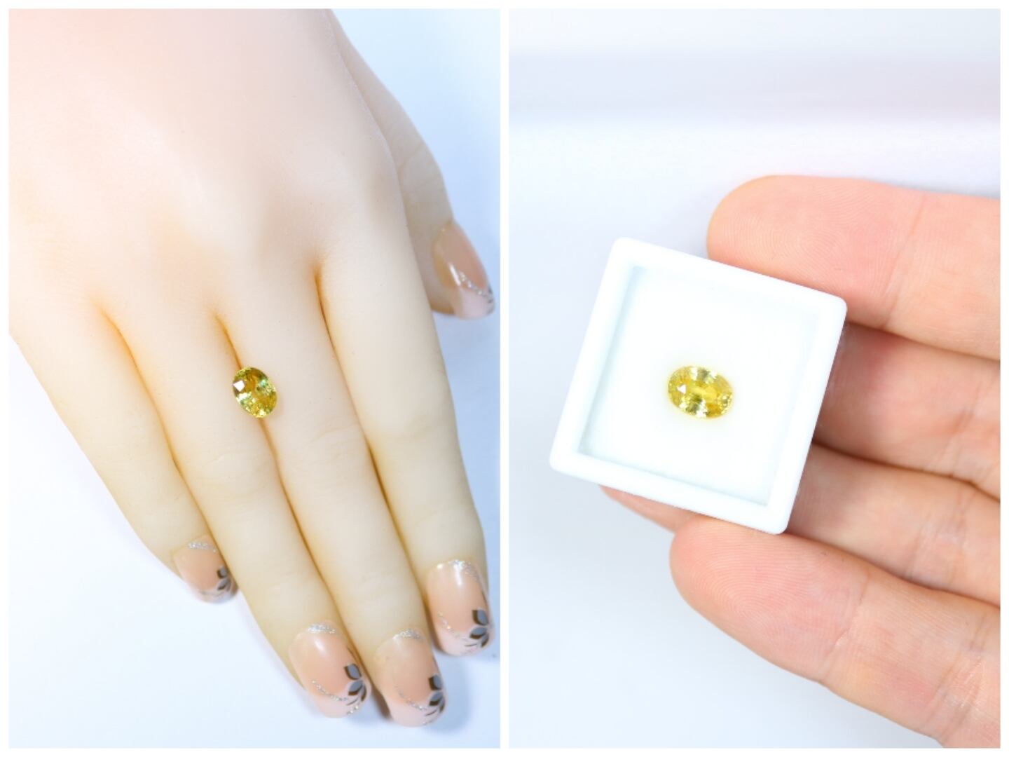 カットは全体的にバランスの良いオーバルカットで、スフェーンならではのギラギラした輝きをお楽しみ頂けます。