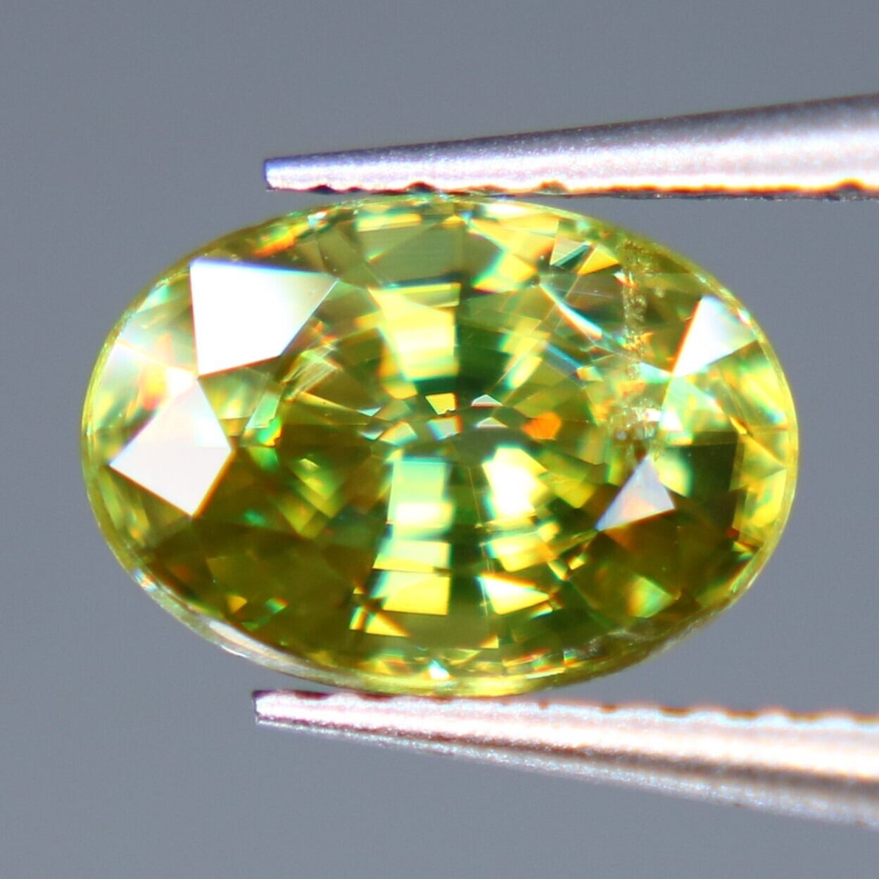 また、光の屈折率と分散度が非常に高く、ダイヤモンドのように虹色の光を輝かせることで人気の宝石です。